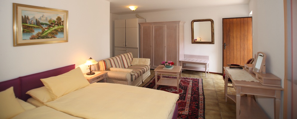 Submergé dans le vert, notre chamber familiale avec jardin doté de lit matrimonial avec en option une chambre connectée à lits doubles qui permet d'en profiter à fond en pleine tranquillité et relax. De plus, la position au sud des chambres procure un bon ensoleillement ainsi qu'une vue imprenable. Les chambres sont composées d'un jardin privé avec table et chaises, une entrée privée, un coin séjour avec un sofa, bureau, salle de bain avec douche-WC, serviettes, radio, télévision LCD, Internet sans-fil gratuit, téléphone, minibar, machine à café Nespresso. |
